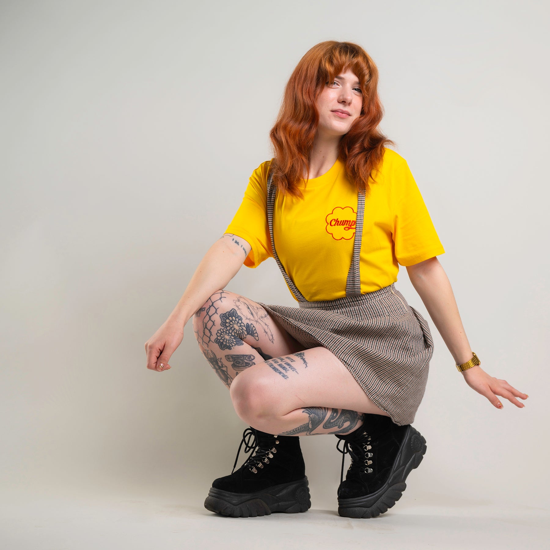 Soft feel bright yellow T-shirt with embroidered breast detail