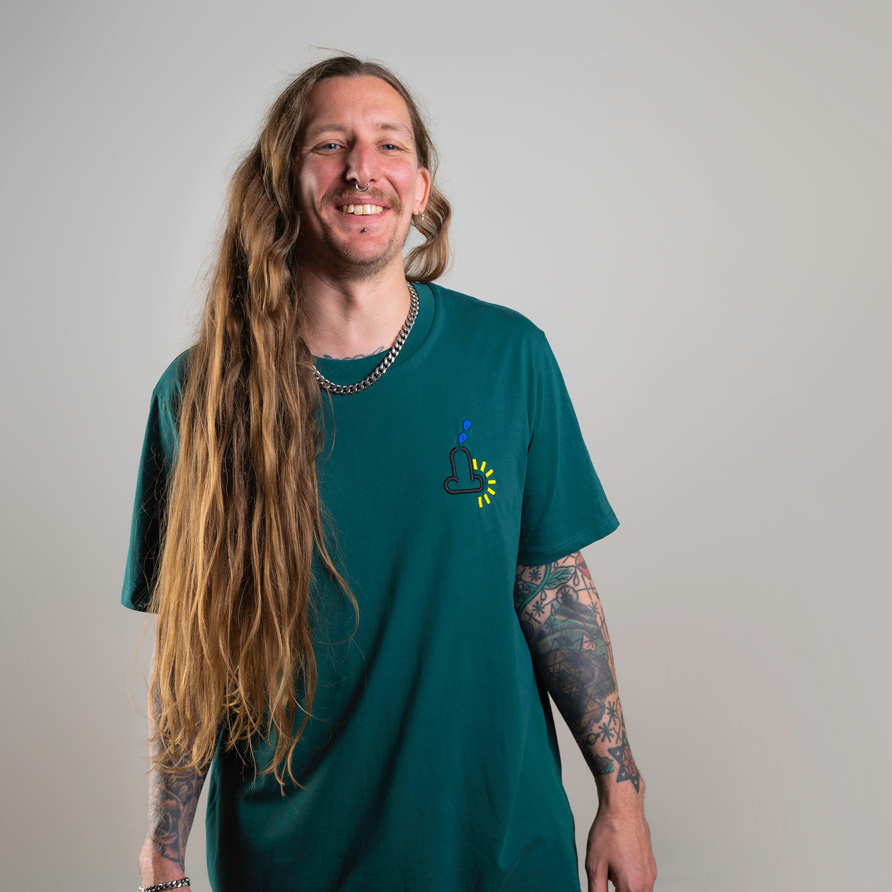 Soft feel bottle green T-shirt with embroidered breast detail