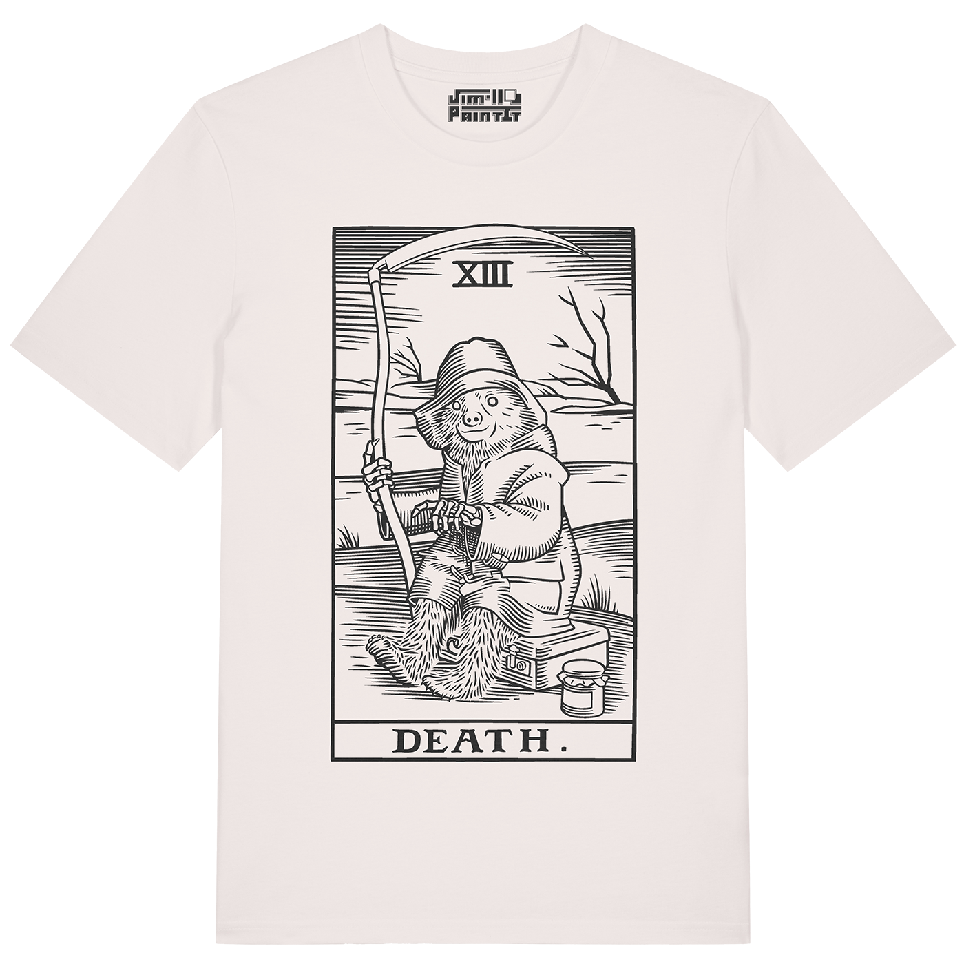 Black front print on vintage-white T-shirt