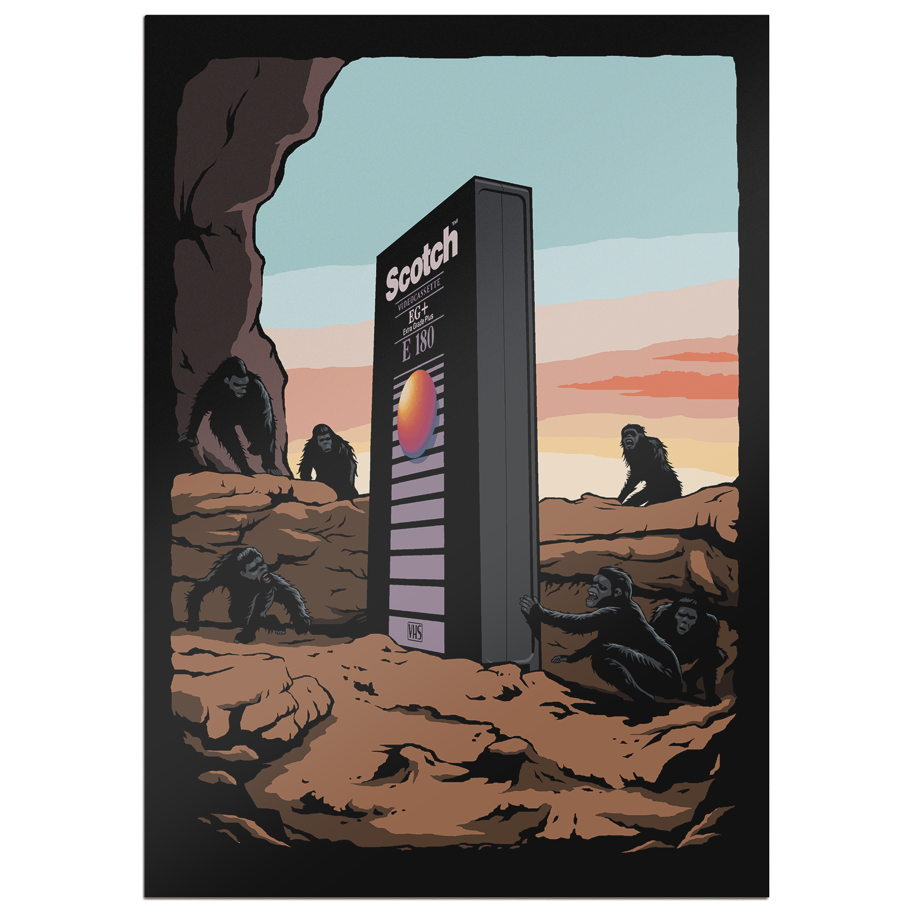 A gloss finish poster print featuring a Scotch VHS tape in place of Kubrick's 2001 monolith
